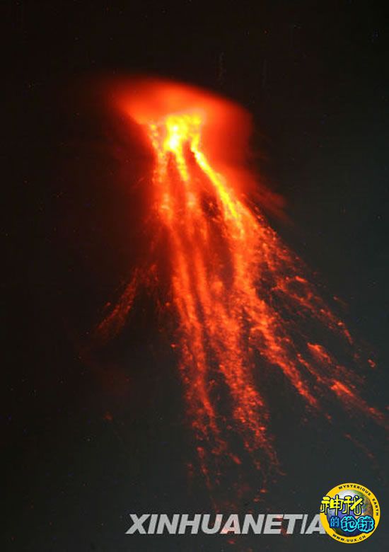 12月14日,位于菲律宾中部阿尔拜省的马荣火山流出灼热的岩浆。