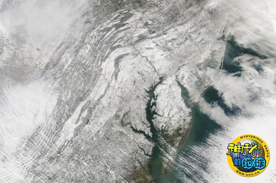 据《连线》杂志报道,这周末席卷美国东海岸的暴风雪非常猛烈,甚至从太空都能观测到它在该地肆虐的情景。20日,美国宇航局的“阿卡”(Aqua)卫星利用中分辨率成像光谱仪(MODIS),在华盛顿中部拍到这张图片。