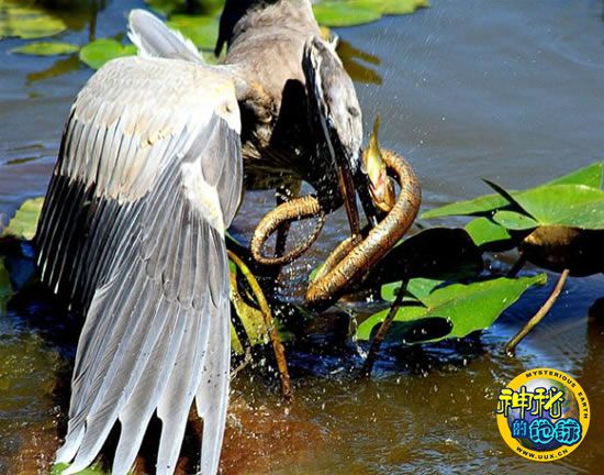 2009年动物捕猎的精彩照片 来源: 蜘蛛网 时间:2009年12月25日 16:23 一组2009年动物捕猎的精彩照片,诠释了自然界中“大鱼吃小鱼,小鱼吃虾米”的普遍规律。 1.鹭吞蛇,蛇吃鱼 鹭吞蛇,蛇吃鱼 这张照片拍到一只鹭正在努力吞食一条蛇,而那条蛇正在吃一条鱼。大卫·克鲁克在美国马里兰蒙加马利县波拖马可河附近的湿地里拍到这张惊人照片。 12345678910...25下一页 上一篇 下一篇 TAG: 捕猎 动物 照片