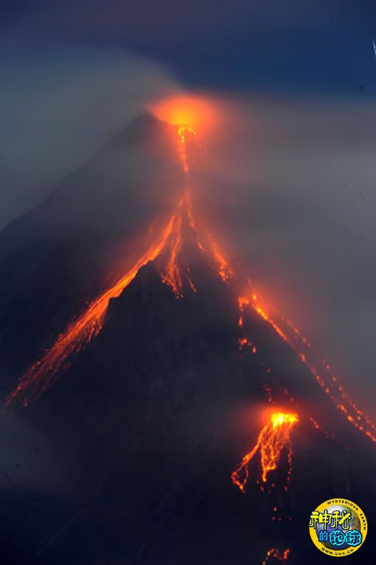 照片拍摄于2009年12月28日,喷流而下的叉状熔岩舌烧焦了菲律宾马荣火山的一面山坡。对于马荣火山最近的喷发,当地居民可能并不会感到大惊小怪,他们中很多人想必仍记得这座火山上一次喷发时的景象。2006年,马荣火山喷发时发出的隆隆声持续了好几个月,共喷出数吨火山灰。随后出现的台风引发泥流,很多村庄被淹,数百人丧命。1814年,马荣火山喷出的熔岩流入卡格沙瓦并摧毁了这座小镇,当时共造成大约1200人丧命。这是迄今为止已知最为可怕的一次喷发。