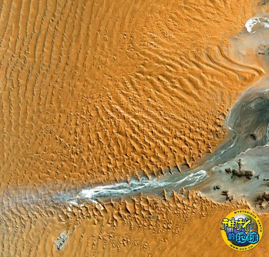 太空中拍摄的地球沙漠 来源: 蜘蛛网 时间:2009年12月30日 11:25 7.世上最高最古老沙丘 世上最高最古老沙丘(美宇航局和国家地质调查局负责的陆地卫星7号于2000年拍摄) 在沿纳米比亚大西洋海岸前进的风影响下,纳米比沙漠的沙丘高度接近1000英尺(约合304米)。第一幅照片展现的纳米比-诺克卢夫特国家公园是非洲面积最大的狩猎公园,同时也是土狼、豺狼、壁虎以及其它奇异动物的家园。纳米比沙漠可能是世界上最古老的沙漠,在所处气候干旱地区的存在史已经有5500万年。目前,这一地区每年的平均降雨量只有区区2.5英寸(约合6.35厘米)。 1...上一页3456789101112下一页 上一篇 下一篇