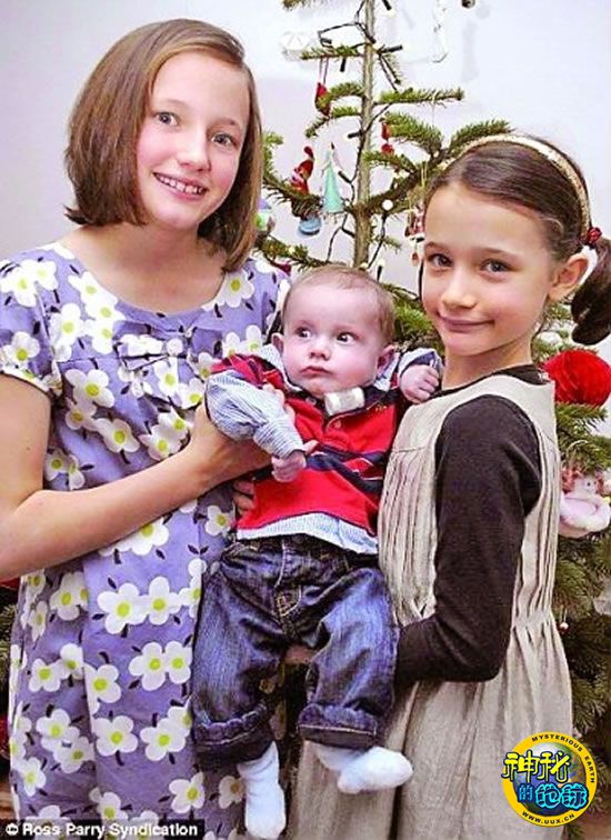 4个月的亚瑟(中)与他的两个姐姐一起在家过圣诞