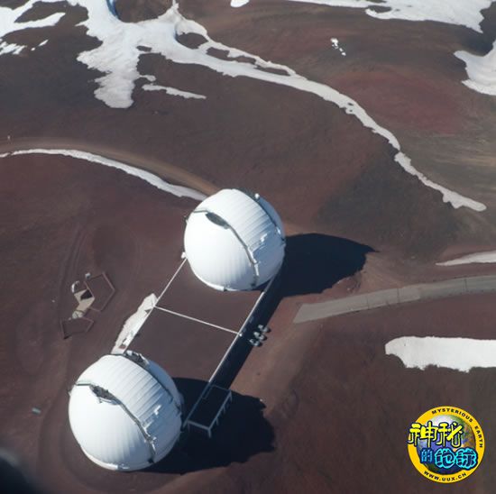 夏威夷莫纳克亚山顶的两台10米口径的凯克天文望远镜。