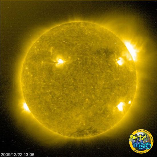 12月22日观测结果显示,太阳上有五个区域处于太阳黑子活动高峰期