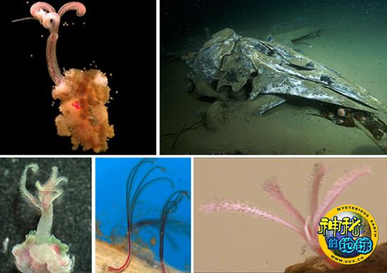 五大古怪生物 来源: 蜘蛛网 时间:2010年1月05日 11:01 2. 食骨蠕虫以鲸骨为食 食骨蠕虫以鲸骨为食 令科学家们惊讶的是,有的蠕虫种类竟然以鲸的残骸为食。2004年,科学家们在海底首次发现了一种黄色卷曲状的食骨蠕虫,并将所发现的这个物种命名为“Osedax”。此后,他们又分别在大西洋和太平洋中发现,在大约100英尺(约合30米)到10000英尺(约合3000米)深的海底到处存在食骨蠕虫新物种。一些死亡鲸类的残骸落入海底后,就成了食骨蠕虫的美食。食骨蠕虫只以鲸骨为生,它们将根须插入鲸骨中,此时蠕虫根须上共生的细菌开始分解鲸的油脂。 上一页12345下一页 上一篇 下一篇