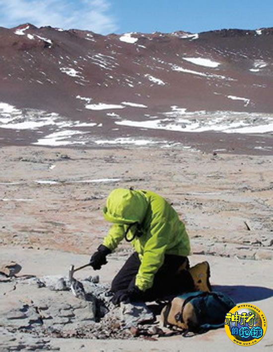 研究的合作者、华盛顿大学的克里斯蒂安·西德尔在南极洲附近采集化石。