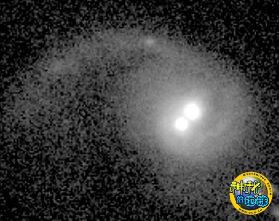 “哈勃”拍摄的照片,两个小星系碰撞后形成单一的星系