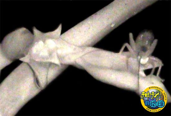 米克奈和同事亚克斯·弗内尔安装的那个运动感应夜间摄像机拍到的这个脚本,展示了蟋蟀在离开Angraecum兰花时,头上沾着花粉。蟋蟀头的大小跟这种兰花花距的开口正好相符。这种没有翅膀的蟋蟀通过跳跃落到兰花上,或者先跳到附近的植物上,然后再爬上兰花。