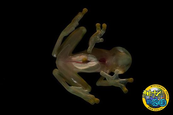 这是生活在厄瓜多尔西部地区的一种玻璃青蛙,通过它透明的胸腔可看到正在跳动的心脏。