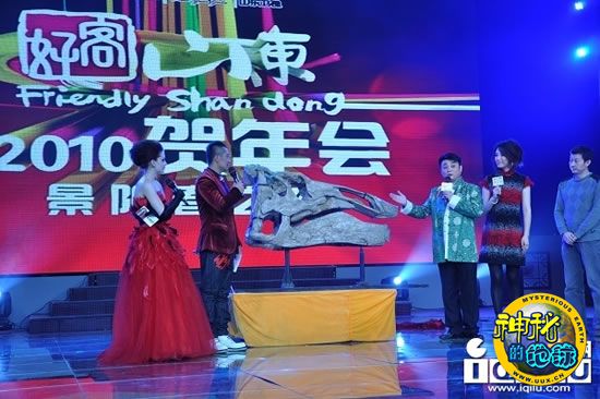 山东贺年晚会"最神秘的嘉宾"当属一具有七千万年年龄的恐龙头骨化石!当礼仪小姐在黑暗中推出这个庞然大物的时候,大家不禁凝神屏息,猜想它的形状和来源。