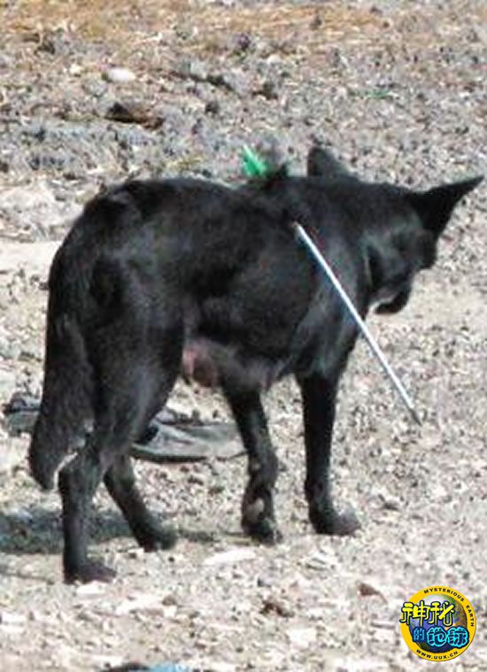 一只还在哺乳的流浪狗遭十字弓利箭穿背,惨不忍睹。图片来源:联合报
