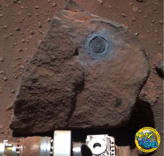 本图是“反弹岩石”的人工色调合成图。图片显示的是它被岩石打磨工具打磨后的情形。