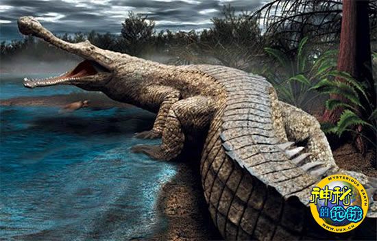 2001年11月,许多游人涌向位于美国华盛顿特区国家地理学会总部的展厅,参观正在这里展出的一条巨大无比的古代鳄鱼复原模型。这种名叫帝王鳄的古代鳄鱼,体长达到11~12米,仅头部就有1人多长。它生活在大约1.12亿年前尼日尔的大河深处,凶残无比。根据它的头骨构造和满嘴粗大尖锐的牙齿,科学家们推测不仅河中的鱼儿是它的食物,甚至中生代的霸王--恐龙,也常常成为它“餐桌”上的美味。