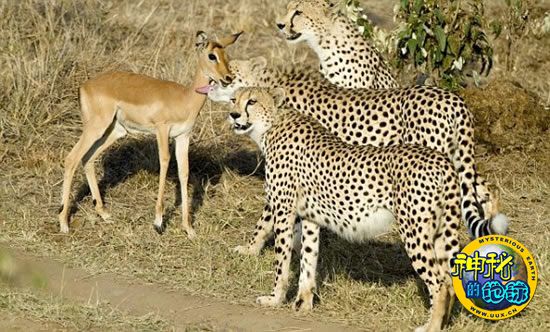 忘记自己身处险境,这只小羚羊看样子对非洲猎豹的友好做出了回应