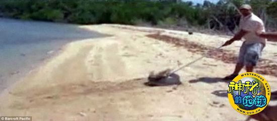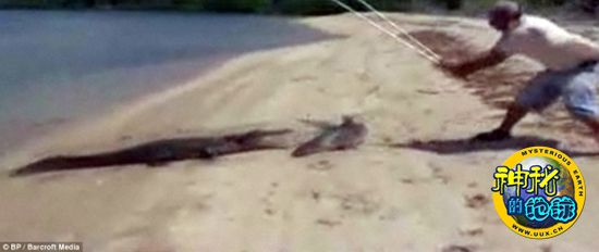 澳大利亚北领地科堡半岛附近海滩今年一月发生了罕见的一幕,几个游客在水中捕到一条小鲨鱼,正将其拖上岸边的时候,不料一条鳄鱼从水中突然冒出来,紧紧咬住鲨鱼不放,双方就此展开了一场拉锯战。