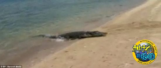 一条3米长的鳄鱼,它从水中偷偷爬出来