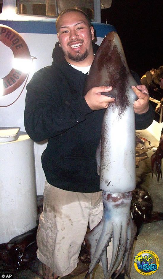 这些被捕捞的鱿鱼名叫洪堡巨鱿或美洲大赤鱿,他们最大能长到2米长,体重达50公斤。这种鱿鱼经常随食物迁徙,最近也在圣迭戈、俄勒冈州以及华盛顿州等美国西海岸出现。