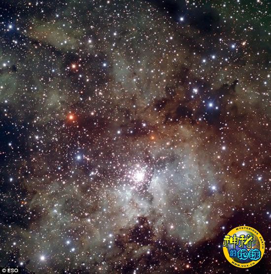 NGC 3603星云距离我们的太阳有2.2万光年,位于银河系的"船底座"螺旋臂中,是银河系中距离太阳最近的星云。来自年轻以及大恒星的耀眼光芒从气体与云雾的帘幕中穿透而出,恒星强烈的光和风造就了星云的外观。在这一区域正在孕育着新恒星,堪称宇宙工厂。据科学家们计算,NGC 3603星云中包含的气体质量超过了太阳的40万倍。到目前为止,在该星云中仍不断地有恒星在形成之中。现在,天文学家们已观测到了大约50个气体和尘埃的聚集体,而它们最终将会在引力的作用下形成新的恒星。星云中所有的恒星几乎有相同的年龄,即100万年,但这与我们有50亿年寿命的太阳和太阳系相比,只是一眨眼的时间。