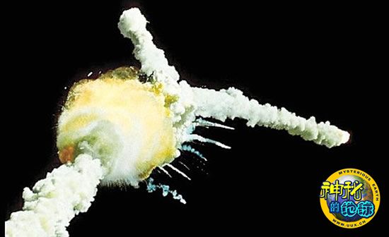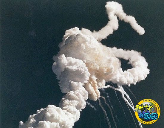 “挑战者号”航天飞机爆炸时被白烟包裹着