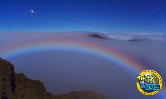 夏威夷火山口的气象奇观“月亮彩虹”