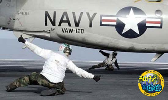 “斯坦尼斯”号航母,“最后检查”小组专家通过这种手势向“灰鹰”航空兵大队的E-2C空中预警和指挥机下达允许起飞的指令