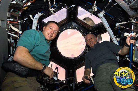 表面看来,美国宇航局似乎正尝试建造自己的“千年隼”号(《星球大战》系列电影中一艘富有传奇色彩的宇宙飞船),可是,对于国际空间站上的宇航员来说,这个新“太空舱”其实更像是前廊。在这张照片上,航天飞机驾驶员特里-沃迪斯(左)和国际空间站指令长杰弗里-威廉姆斯(右)正站在穹顶舱的前面。这个穹顶舱实际上是“奋进”号机组安装到国际空间站上的新太空舱的一部分。穹顶舱共有七扇窗户,于2月17日早晨首次全部打开,为宇航员们俯瞰撒哈拉沙漠提供了绝佳的角度。