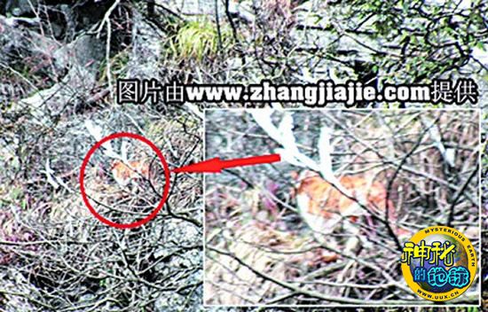 2月18日下午,张家界某旅行社主管覃雯在天门山景区发现金黄色的野生动物后,当即拍下了两张照片。为探明野生动物真相,2月19日,张家界市林业局、天门山国家森林公园管理处有关专家和该旅行社工作人员覃雯、王力黑一道前往天门山考证。