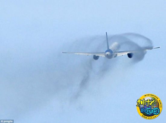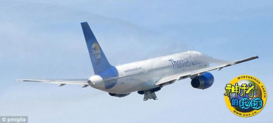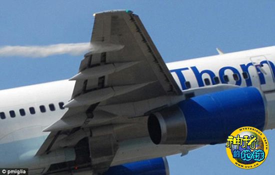 这张照片可以清楚地看到,飞机起落架正在缓缓收回,正在泄露的燃料在蔚蓝色的天空中清晰可见。