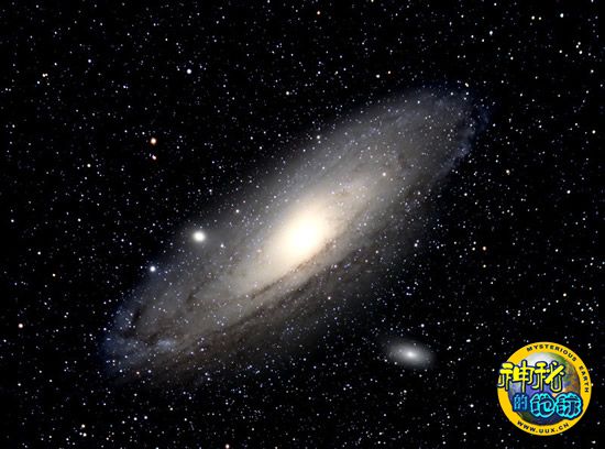 星尘飞散,如同旋转的臂膀,脱颖而出十分美妙。旁边还可以看到两个椭圆形状的伴星陪衬左右:NGC 205位于仙女座星系明亮的螺旋中心右侧,而左侧M32的光芒几乎盖过了M31。这幅图片令人印象深刻,清晰度和视觉跟踪的宽广度都让人记忆犹新,让人感慨这么熟悉的星系竟然会呈现出如此美丽的景象。