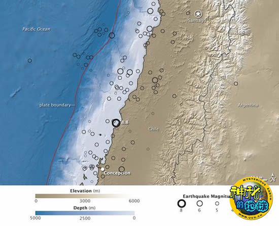 位于智利大地震震中的构造板块活动对地球质量的重新分配起到一定作用(图片提供:NASA Earth Observatory)
