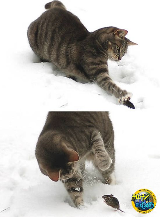 自然界中野生动物的“弱肉强食” 来源: 蜘蛛网 时间:2010年3月10日 16:14 12. 猫和老鼠 猫和老鼠 《猫和老鼠》(Tom and Jerry)动画片也有现实版,一只名叫弗里克斯的猫正在雪地里逗弄一只可怜的小老鼠。没想到的是,这只小老鼠竟然也有Jerry的勇气。面对体形比自己大得多的弗里克斯,它竟然敢抬起爪子去推开戏弄它的猫爪。对于老鼠的勇敢反应,弗里克斯似乎一时没有适应过来,这有点出乎它的意料。恼羞成怒的弗里克斯当然不会再给小老鼠任何表现的机会。这只小老鼠只拥有Jerry的勇气,却没有Jerry的运气和智慧。 新浪科技(彬彬) 1...上一页3456789101112 上一篇 下一篇