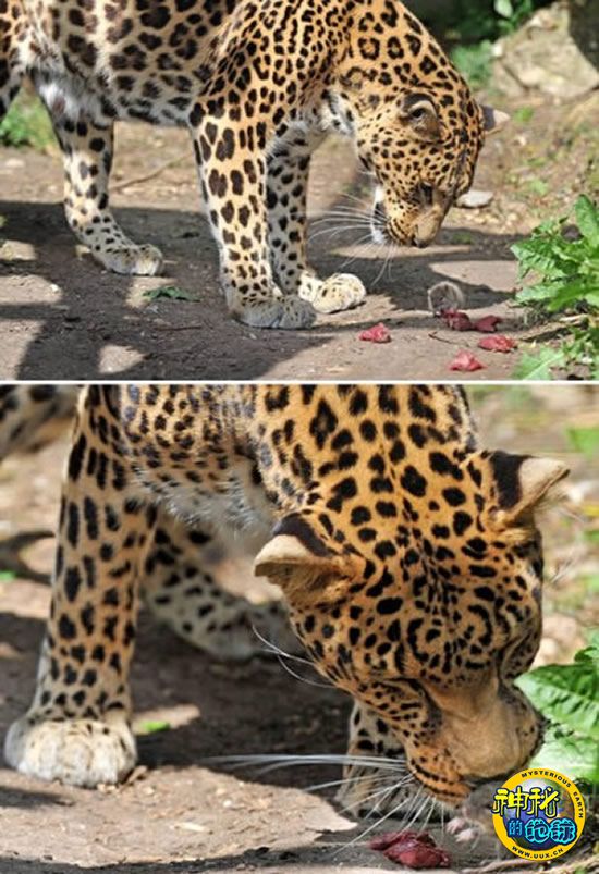 人为财死,鸟为食亡,图中这只老鼠为了食物似乎也不要命了。它竟然敢从一头饥饿的美洲豹嘴边抢食。当动物园饲养员把肉块扔到美洲豹围栏里时,跑得最快的并不是美洲豹,而是一只老鼠。这头美洲豹名叫希娜,今年12岁。她正准备享用午餐,竟然发现有人在抢夺她的食物。不过,更令人意想不到的是,这只老鼠好像没有丝毫的危机感,希娜反而对这只老鼠有些害怕。她与老鼠保持一定的距离不敢靠近,后来又小心翼翼地用自己的鼻子试图将老鼠赶走,但这些手段都没有凑效。这只胆大包天的小老鼠在美洲豹眼皮底下肆无忌惮地享用美食,直到吃饱为止。