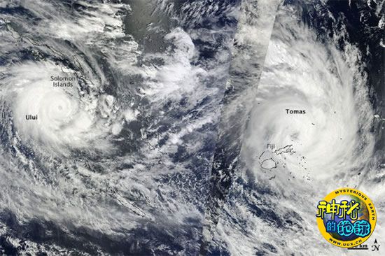 据美国海军联合台风警报中心报告,2010年3月中旬,两股强热带气旋形成于南太平洋之上。在所罗门群岛之上,强热带气旋“乌卢伊”最大持续风速为每小时240公里,短时阵风达每小时300公里。在斐济上空,强热带气旋“托玛斯”最大持续风速为每小时215公里,短时阵风达每小时260公里。