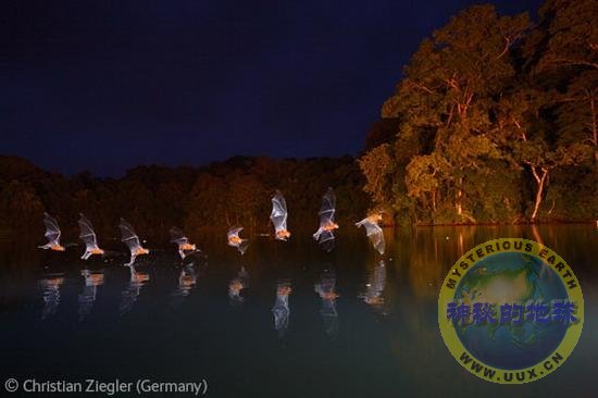 食鱼蝙蝠 来源: 蜘蛛网 时间:2007年12月18日 15:37 食鱼蝙蝠 蝙蝠是世界上唯一一种能真正飞行的哺乳动物,它们特别擅长在黑暗中飞行。食鱼蝙蝠利用回声定位能力发现水中的鱼,然后把脚伸到水中刺穿猎物,并能在飞行中吃东西。这种蝙蝠可将捕获物储存在具有伸缩性的颊囊中,以便继续捕猎。 上一篇 下一篇 TAG: 蝙蝠
