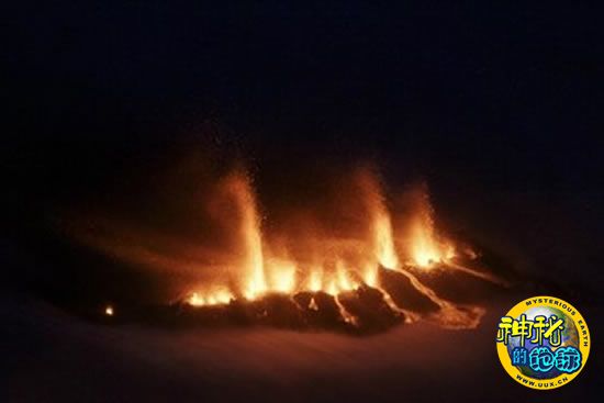 3月21日,熔岩从冰川下喷涌而出