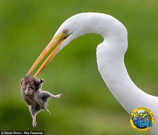白鹭捕食囊鼠 来源: 蜘蛛网 时间:2010年3月25日 11:37 白鹭捕食囊鼠 白鹭捕食囊鼠 白鹭捕食囊鼠 进食后的白鹭,脖子里鼓鼓的,囊鼠还没有完全咽下去。 美国摄影师史蒂夫·辛恩近日有幸抓拍到白鹭捕捉和吞食一只小囊鼠的全过程。 史蒂夫表示,当时他正坐在地上,突然发现草叶晃动,随后一只囊鼠出没。附近的一只白鹭在仔细观察一阵后,悄然走上前去发动了袭击。这只运气欠佳的囊鼠便成了白鹭的盘中餐。 他还解释说,白鹭的抓捕显得十分缓慢,几乎都是慢动作,悄悄地逮住了囊鼠。通常,白鹭不会抓捕地面上的小动物,而是将躲在地下的猎物从窝里扒出来。 国际在线(杜林林) 上一篇 下一篇 TAG: 捕食 白鹭 囊鼠