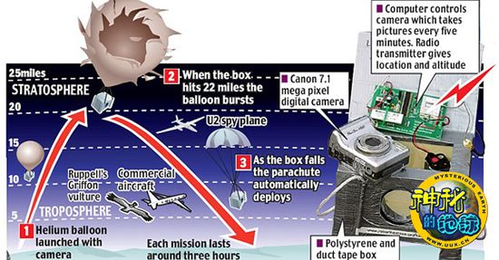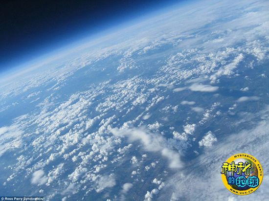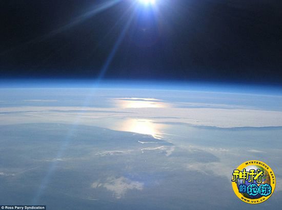 平流层:这是哈里森的奇妙装置拍摄到的图片之一。他的装置很简单,将一个普通相机,放在聚苯乙烯盒中,最后捆扎在氦气球上。