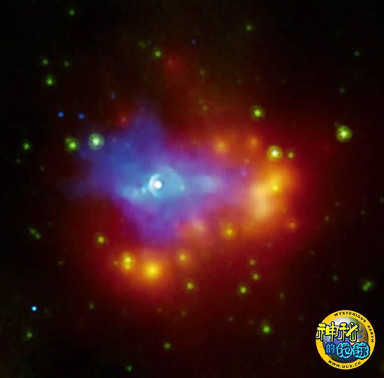 美国国家地理一周太空照片——“赫歇尔”陨石坑 来源: 蜘蛛网 时间:2010年3月31日 10:23 2.超新星残骸 超新星残骸 正如这张最新公布的超新星残骸G54.1 0.3照片所展现的那样,生命循环甚至能让巨大的恒星化为灰烬。照片中央的亮白色脉冲星是一颗在剧烈的超新星爆发中消逝的巨大恒星核心残骸。钱德拉X射线天文望远镜的数据显示,被这颗濒死恒星驱散的物质正被脉冲星高能大风(蓝色)所加热。斯皮策太空望远镜的红外图像则曝光了四周的尘埃和气体,当物质从附近星团穿过时,这些尘埃和气体被点亮。这张照片是在2010年3月29日公布的。 上一页12345下一页 上一篇 下一篇