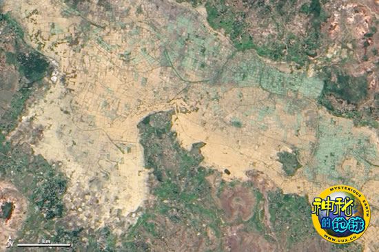 从图中可以看出,洪水淹没的区域位于贝齐布卡河的正南方,距离海岸线大约40公里。洪水区呈米褐色和绿色,占据了本图的大部分,其中一块块农田呈现出一个个不规则的矩形。只有一些较高的地带没有被洪水所淹没。