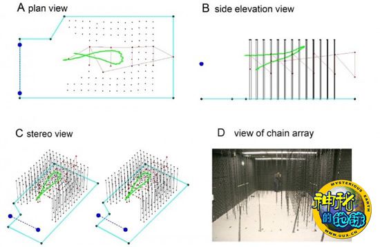 近日美国科学家研究发现,在具有繁琐障碍物的环境下,蝙蝠会通过变动声音频率来为自己做回波定位。美国科学家在实验过程中还专门制作出了一个3D“回声定位”效果模型。