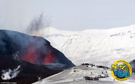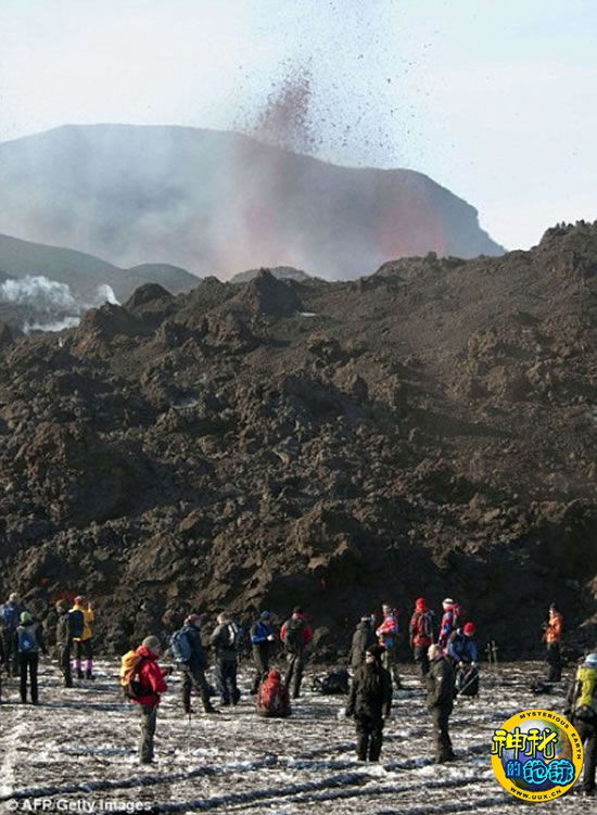 数百名游客为了目睹火山爆发的壮观场面,蜂拥来到冰岛南部的这一地区。