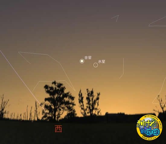 本次水星东大距期间,它的旁边还有一颗更亮的行星相伴,那就是金星。9日黄昏,金星和水星的角距离只有3°左右,它的亮度可达-3.9,作为一个天空中的方向标可以说是当之无愧。找到金星后,通过我们为大家提供的示意星图再找到水星就更加容易了。