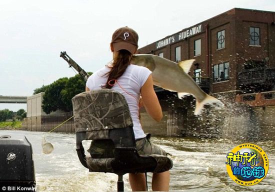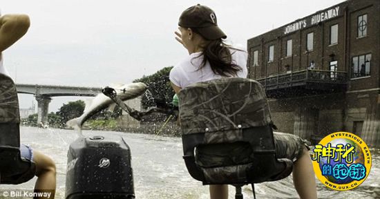 据英国《每日邮报》报道,近日,在美国伊利诺伊河上演了惊奇一幕:一名女子在捕猎亚洲鲤鱼时,却遭亚洲鲤突袭。一条亚洲鲤突然跃出水面,猛力拍打这名女子的面部。