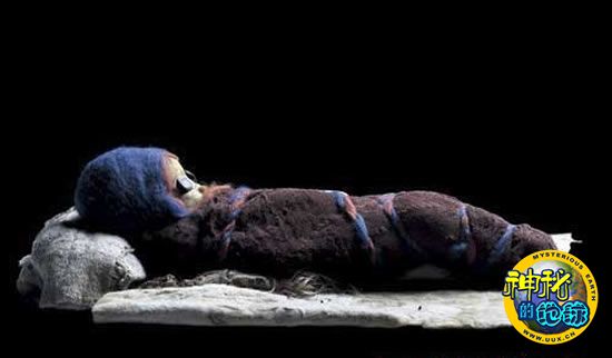 在古墓区共发现了大约200具干尸,这是其中一具婴儿木乃伊。