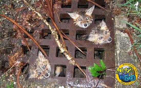 “好奇害死猫”是一句非常有名的谚语,但是总会有人忘记这句忠告。正如图片中我们所看到的场景一样,因为太好奇,三只狐狸幼崽被卡在了下水道的进水口。