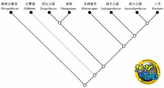 图1 主张禄丰古猿是早期人科成员的学者提出的人猿超科关系分支图