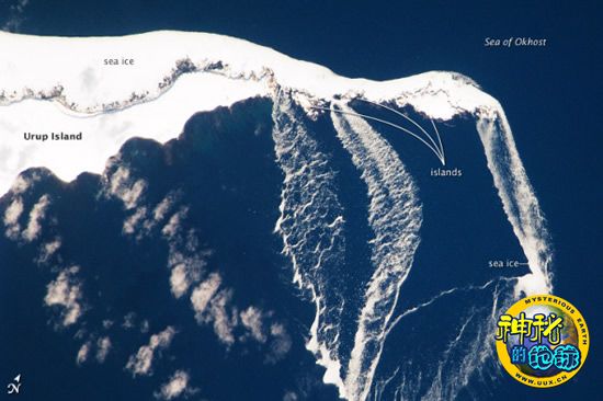 据美国宇航局官网报道,从太空看去,往往很难分辨出鄂霍次克海南方哪里是陆地边缘,哪里是海冰边缘。2010年3月30日,国际空间站宇航员拍摄了俄罗斯千岛群岛中乌鲁普岛东北端的鸟瞰图。在这幅清晰的图片中,宇航员也无法分清陆地与海冰的分界线。