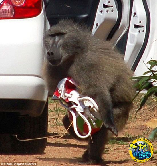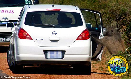 南非狒狒拉开车门“偷窃”游客手提包