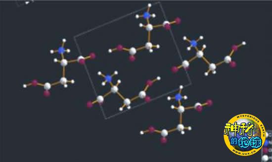 左手的天冬氨酸分子的晶体(上)与计算机图像(下)可能是地球上的生命的所有氨基酸(蛋白质的基本单元)的“祖先夏娃”。
