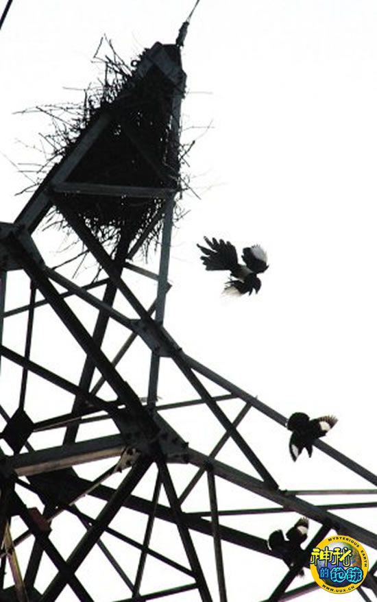 附近的居民武先生告诉记者,就在半个月前,他散步路过这座高压电线架下,忽然有一根细树枝从空中掉了下来,随之听到上面传来一阵阵悦耳的鸟叫声。抬头一看,发现是两只喜鹊衔着树枝站在电线架顶部的钢架上,像是在讨论什么似的——估计这是一对夫妻,它们开始搭窝了。